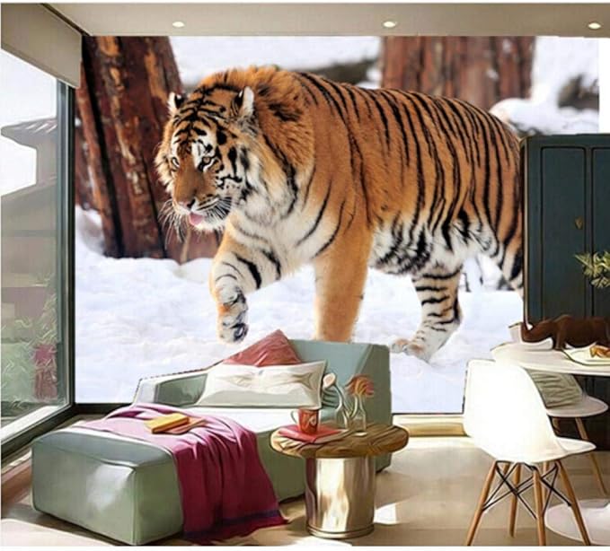 Mazhant Benutzerdefinierte 3d Wandbilder Winter Schnee Tiger Wallpaper Hotel Restaurant Wohnzimmer Sofa Tv Wand Schlafzimmer Tapete 350x245cm Amazon De Baumarkt
