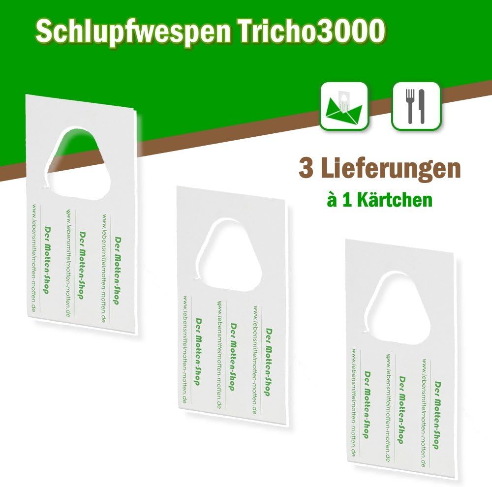 Der Motten Shop 3 Karten A 3 Lieferungen Schlupfwespen Gegen Lebensmittelmotten Biologische Nachhaltige Mottenbekampfung Umweltfreundliche Und Giftfreie Alternative Zu Mottenkugeln Amazon De Garten